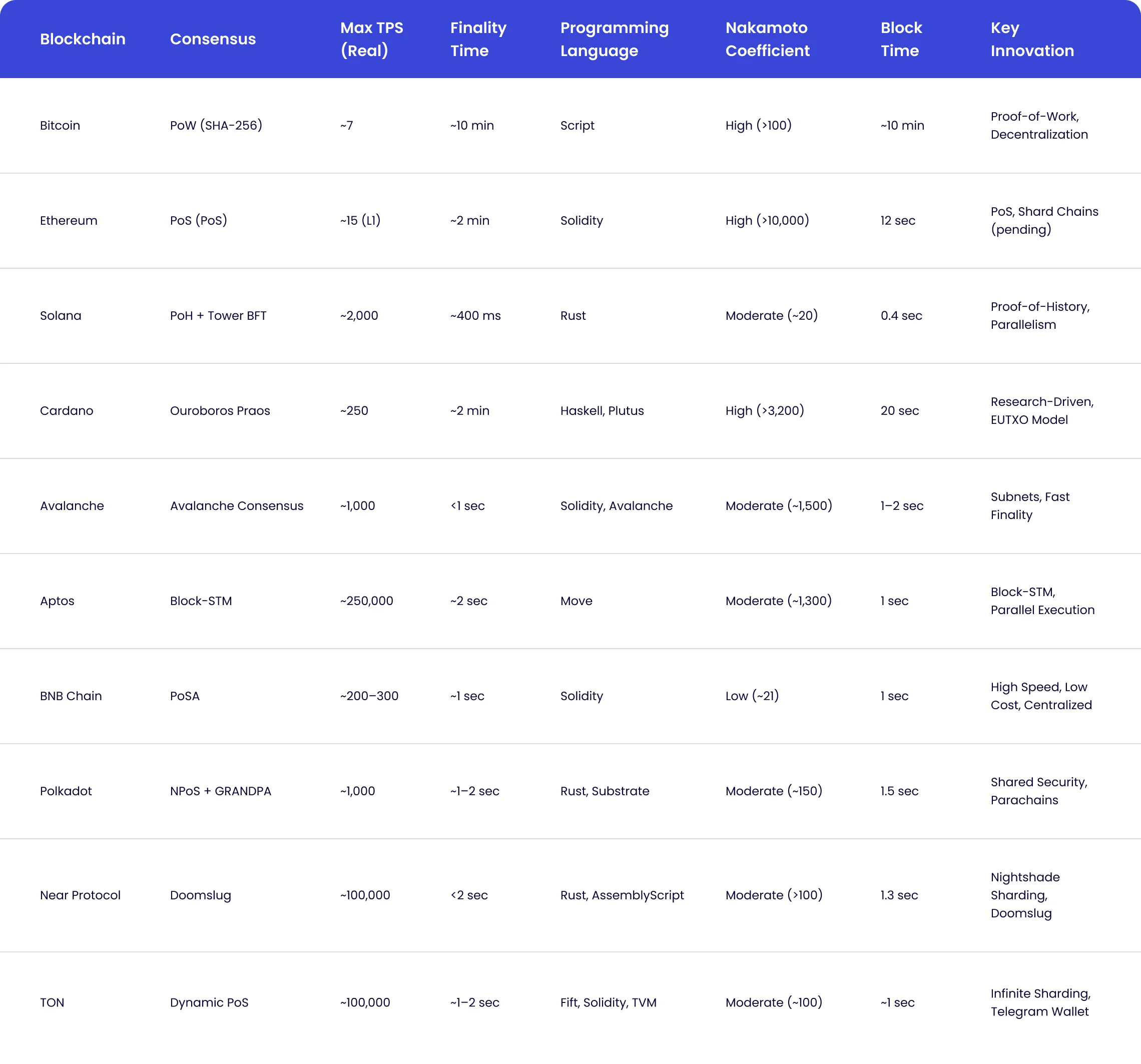 Here's a side-by-side comparison table of the blockchains mentioned:
